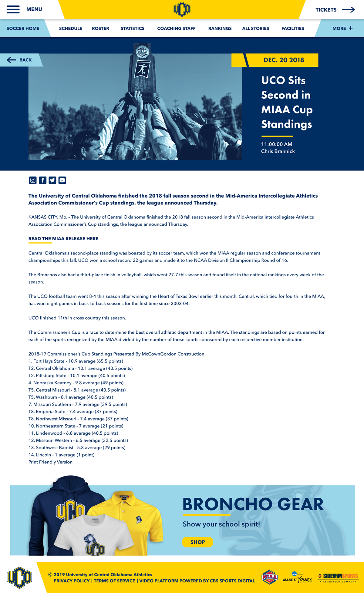UCO Womens Soccer Website
